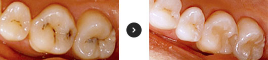 | 치아겉면이 법랑질의 충치로 통증이 없으며 육안으로도 관찰이 힘듭니다. |